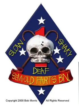 Wayne D. “Crunch” Sirois was the creative artist and Robert G. “Okie” Morris was the marketer of the Semi-Old Farts Bn image